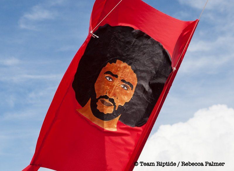 This item was harder than it looks. Following the pattern of failing to get a fifth-grade kite to fly, the attempt to fly Princess Leia was equally unsuccessful for team Built on Hope. Rebecca Palmer, from team Riptide, had much more success… eventually. She said, “I admire Colin Kaepernick for using his platform to bring attention to the tragic injustice faced daily by people of color in this country [the United States].”