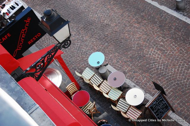 My apartment was a walk up studio where the wooden stairs always smelled of roses. The room had exposed wooden beams and large French windows letting in tons of light. The bathroom was of marble, the kitchen small and the furnishings tasteful with a large mirror. There was always something fun going on down below, be it school children walking by hand in hand, a group giving out free massages or the daily mix of Parisians and tourists. The restaurant cafe Tournibride next door became our favorite haunt and the waiter would always give us a knowing smile. The men there spoke of being regulars for twenty years.