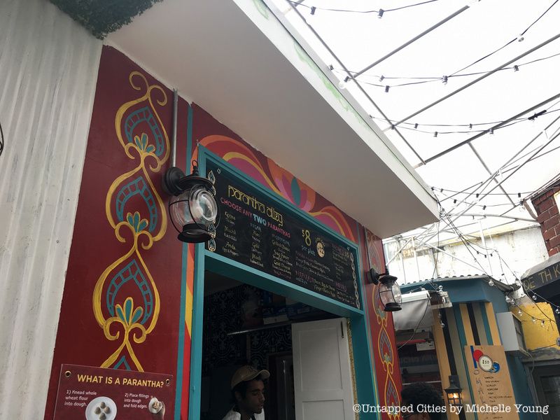 In the mood for spicier food? No worries. Turn around and you’ll see “Parantha Alley,” which serves freshly made parathas (Indian flatbreads) with spices and other fillings reminiscent of the same fare served in the street stands of Delhi.