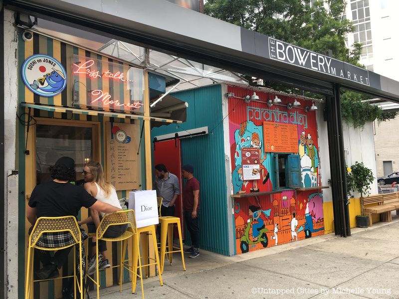With all the popular restaurants that New York City has to offer, it’s easy to miss the tiny, open-air food market sitting on the corner site of a former auto-mechanic shop at 348 Bowery. But we promise that this food court of sorts, called The Bowery Market, is worth visiting both for its delectable food options and irreplaceably quaint atmosphere. Venture inside and take a look at this quirky new eatery!