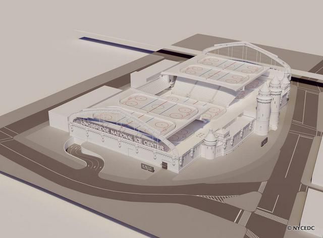Artist rendering of the new Kingsbridge National Ice Center, via NYCEDC