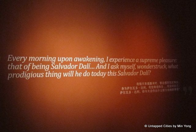 Scattered throughout the exhibition are also timelines plastered on the walls of his life and milestones, in addition to Dali’s quotes which provide insights into the visionary’s confidence in himself, his pressures and the unique way he sees the world.