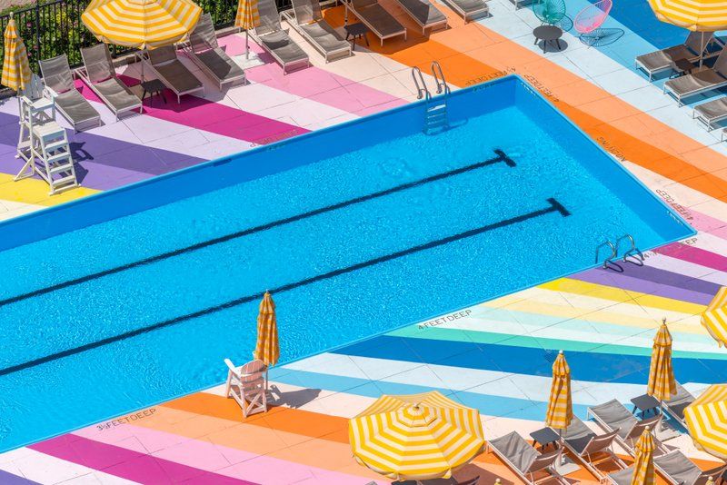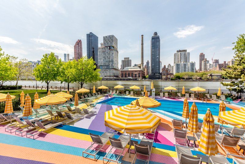 Although initially intended for Manhattan Park residents, the pool deck installation is accessible to all for $40 on weekdays and $60 on weekends. With views of the city skyline, the popup pool party art installation is the perfect place on a summer day to bask in the sun and marvel at Suttons larger than life vibrant piece.