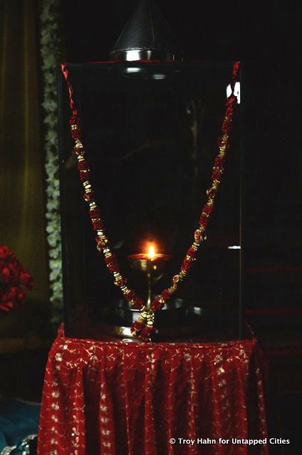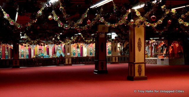 The November sun is setting early on this very non-descript street in Woodside, Queens where I’ve ventured to visit the Divya Dham Temple, what the New York Times described as “vast temple complex and living history museum.” The sign reads “Divya Dham The House of Worship.” I’ve arrived at a spiritual oasis in the the middle of what once was the heart of Western industry. People exit and enter casually through the door as I gather the courage to enter the unknown. The temple is dimly lit with sporadic swatches of green florescence highlighting the alters of various hindu divinities. I stand wondering where to begin this journey. A man in a tiny frame in his mid 70’s reaches for the huge brass bell to mark his arrival, the thunderous sound is meant to wake the gods; it simply brings me back to earth.
