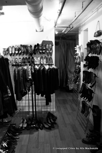 The space is used effectively, divided into three sections, each visible from the change of décor. The ground floor is divided between the ‘old world’ bar area on one side, and the ‘clean and contemporary’ area dedicated to ‘New York’s up-and-coming and underground designers’ on the other. The designers are rotated every four months giving them time to display and sell their work. The downstairs on the other hand is the ‘clothing exchange’ where buyers can choose from a selection of vintage and second hand men’s and women’s apparel which have either been bought from or traded with the public.