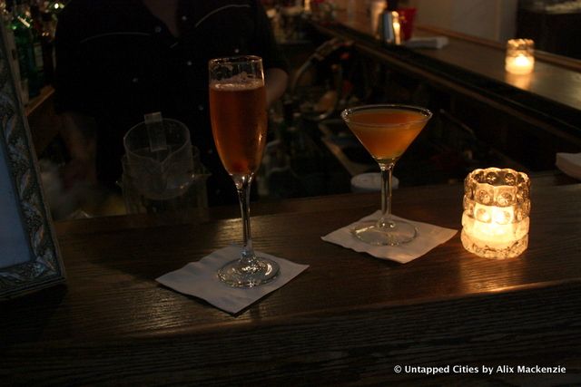 The atmosphere was relaxed with a gentle buzz of chat with seeming regulars bantering with the barman, while candles flickered and cocktails were sipped as customers perused the racks of original New York designers’ wears. Choosing the shop’s signature ‘Dressing Room Cocktail’ and ‘Orange County’, our experience was only further enhanced by the unique experience of watching ‘The Rocky Horror Picture Show’ play out on the back wall to a completely new soundtrack of the live band who had come for the Tuesday night session.
