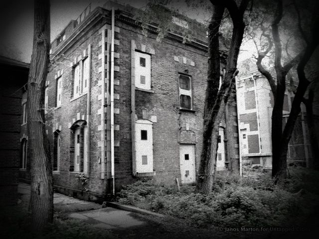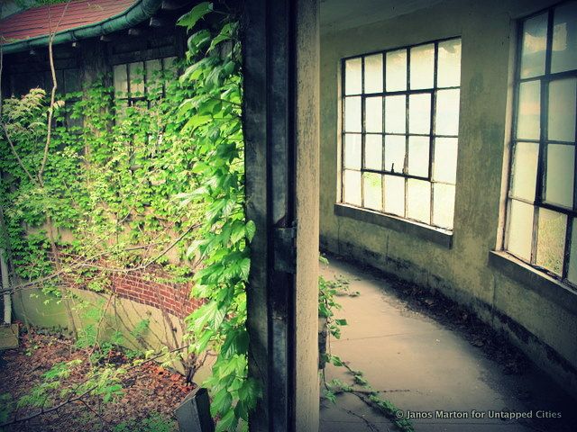 Rain cascades from broken skylights. Weeds thick as tree branches poke through floors and walls. Veils of ivy shroud entire sections of the hospital in permanent darkness. Four decades of bird droppings and fallen plaster carpet stairways. Chunks of masonry have fallen off exterior walls, and steel beams are so rusted that the buildings they support may soon collapse.