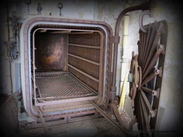 Attention to hygiene was meticulous. Sheets and mattresses were cleaned daily by industrial washing equipment. Medical staff took decontamination showers, and the facility was among the first in the nation to formally require the use of rubber gloves and face masks. Interestingly, the original hairnets consisted of cap-like fabric, and were designed to protect doctors’ heads from the scalding electric overhead lights. The hospital’s autopsy amphitheater served as a medical classroom, and there are hopes to eventually restore the room for educational purposes.