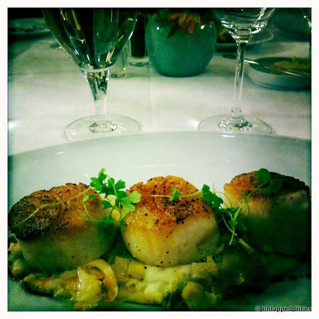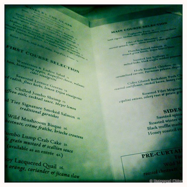 Forget the over-hyped Lincoln. The Grand Tier restaurant in the Met is a tried and true institution. My father, doctor and opera fan, started taking his referring doctors to an evening out at the Met here ten years ago. Sometimes I got to go when a doctor couldn’t make it and it was always a magical experience. As the name suggests, you sit on the grand tier level (where The White Stripes performed during last year’s fashion week) amidst two enormous Marc Chagall murals and a cascade of chandeliers. Your view is the Lincoln Center plaza and the Met Opera lobby. Everyone else in waiting for the opera to start has a view of you. The food is always great and the best part is that you return to have your dessert and coffee during intermission! I always order the souffle.