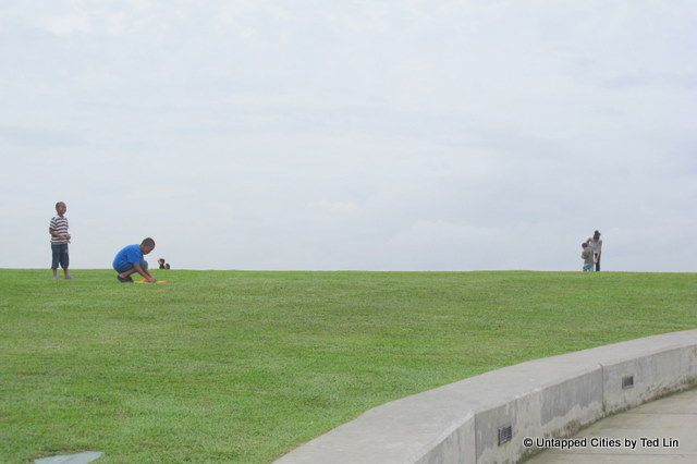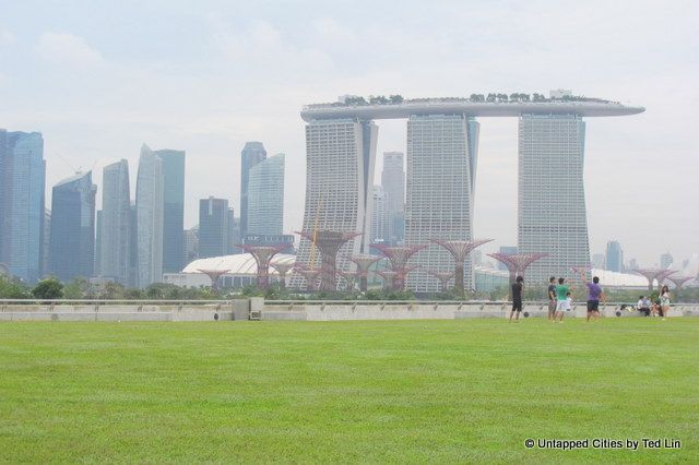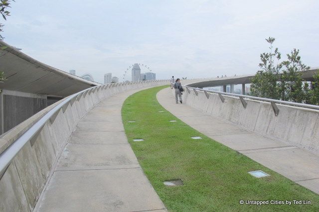 The other benefit of Marina Barrage is as a lifestyle attraction. The sloping walkway to the upper level is a unique design, and the lawn on the upper story is a popular venue for picnics, dogs and kites.