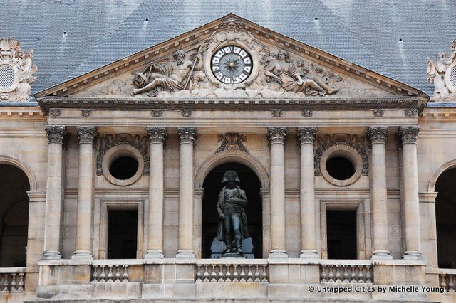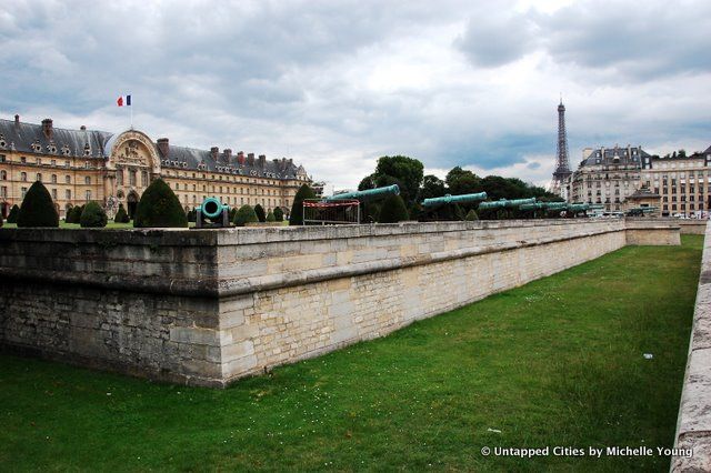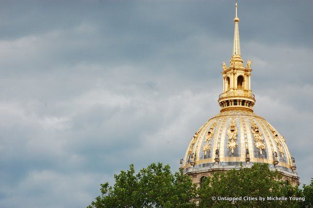 Probably the best looking nursing home ever built! The Invalides was originally a hospital and home for wounded or elderly soldiers, and now houses the military museum and the tomb of Napoleon (among others). It has also retained its function as a hospital and home for disabled war veterans. The famous dome is actually part of a chapel that was an afterthought but I think the dome (inspired by St. Peter’s Basilica in Rome) provides striking visual interest to the complex. Without it, it’s pretty much another large-scale building in the Louis XIV style. Today was kind of a surprising great day to take photographs. The sky was a bit ominous but not threatening and the gold of the dome really found its best backdrop I think!