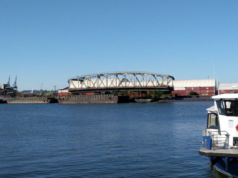 The Kosciuszko Bridge heading down the East River on barges last Wednesday