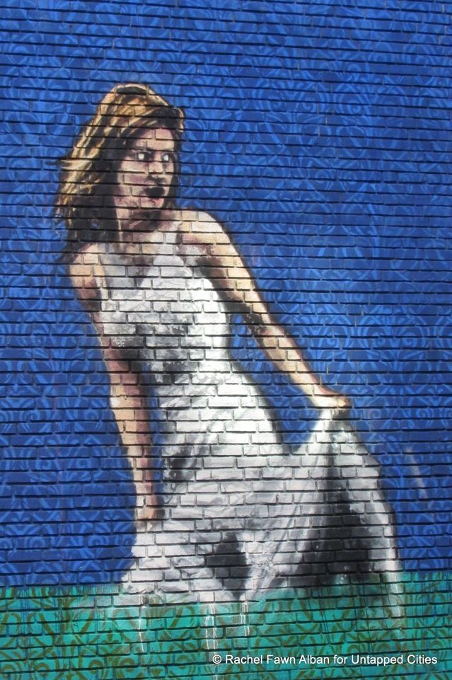 The painting was done during the last week in October 2012, right before the festival. As Ron was working on this enormous mural, the city began to brace itself for Hurricane Sandy. Ron, who lives in Beacon, finished quickly in just 9 hours and raced back upstate. Then, Hurricane Sandy hit.