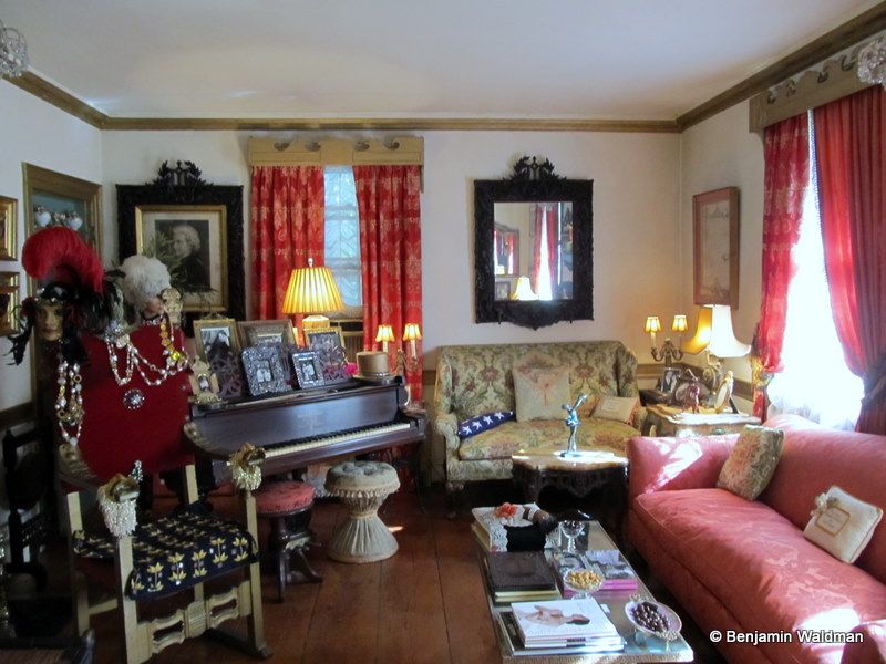 The living room contains an 1888 Steinway Grand piano, intricate wooden frames carved by Michael’s great-grandfather, a flag flown over the United States Capitol, a photograph of Marion in the Will Roger’s Follies, and chandeliers from the townhouse of New York City Ballet co-founder, Lincoln Kirstein. Items belonging to George Balanchine abound as well.
