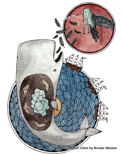 What do men with conjoined beards, jars of pickled vegetable, houses blooming out of flowers, a superhero-like beluga whale, and pair of coffee-loving mermaids have in common? They are all the whimsical artwork of Portland-based illustrator Brooke Weeber, the creator of The Little Canoe. According to the artist’s website she began drawing at an early age and pursued her passion for drawing at high school and in college; she received her BFA in painting at the University of Oregon. She traded her Northwest roots for New York City, where she pursued her other passion of professional baking. After some time she began to miss her Douglas fir trees and wished for more elbow room to draw so she packed her bags and headed for Portland in 2009.