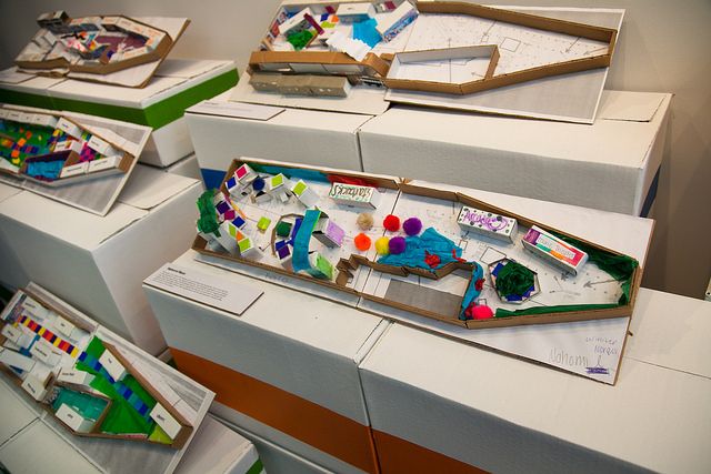The month-long exhibit also offers an opportunity for the community to share ideas—photos, drawings, commentary, etc—on park composition and aesthetic. It’s proving to be an engaging, creative way for people in and beyond the neighborhood to have input on how the long-retired trolley station ought to be reused as a public space. The image below includes some of the student models that are part of the exhibit.