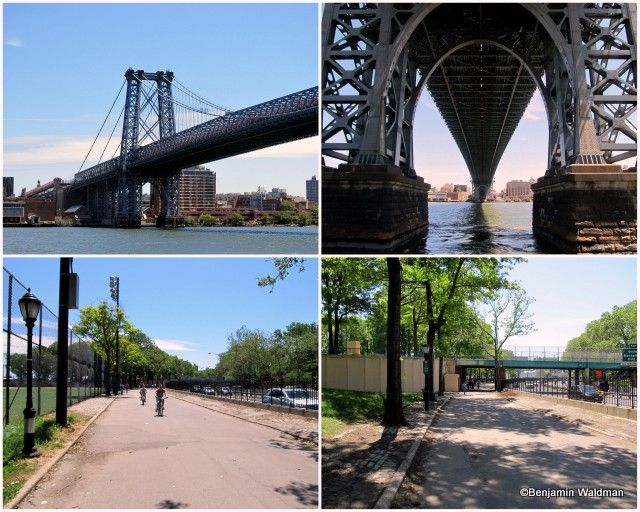 After walking under the 1903 Williamsburg Bridge, and taking a possible detour through Corlears Hook Park, the waterfront path merges with the inland path.