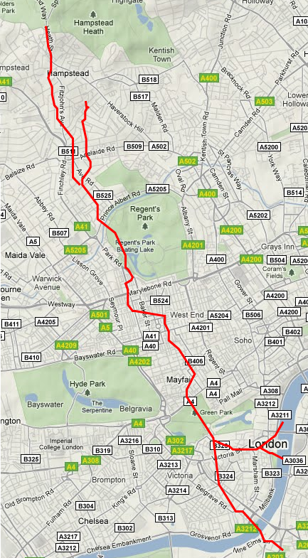 The Tyburn River begins in Hampstead, flows through Regent’s Park and St. James Park, and empties into the Thames. The river once branched to form the island of Thorney, upon which Westminster Abbey was built.[9] The river was first used as a source of fresh water and later as a de-facto sewer. In fact, the first record of an underground sewer and water system in London was under Westminster, built during the reign of Henry II.[10] While the Londonist has reported on the path of the Tyburn from a pedestrian angle, guerilla urban explorers such as Steve Duncan have followed the Tyburn River underground. He writes, “Today, the Tyburn is a sewer flowing through a brick tunnel. Officially titled the King’s Scholars’ Pond Sewer, it’s about three meters in diameter when it passes underneath Buckingham Palace. Walking through it we saw many side channels-some go only a short distance to manhole shafts, some connect to side-street sewer lines. There are also consistent tap-ins (individual sewer pipe outlets) from buildings built above the tunnel.” [11]