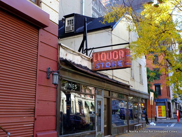 The multiple renovations speak to many methods of adaptive reuse. From family home to Civil War-era underground dance hall to dry goods store, the building reincarnated itself once again after Prohibition as the neighborhood liquor store. The name was evidently a popular one and was kept when the building was repurposed once again as the “Liquor Store Bar” in the 1980s, slightly predating the drastic makeover of the neighborhood. NY State Federal law requires a certain length of distance between places of worship and places that sell alcohol. When a mosque opened, the Liquor Store Bar was ordered to close. The mosque’s spokesperson tried to stop this, saying they would rather not be a cause of unemployment but a member of the community. Nevertheless, the liquor license was denied. The structure though remained hardy and was refreshed once again by its current occupant, J. Crew which has leveraged the vintage design as a branding tool, keeping the historical details there today.