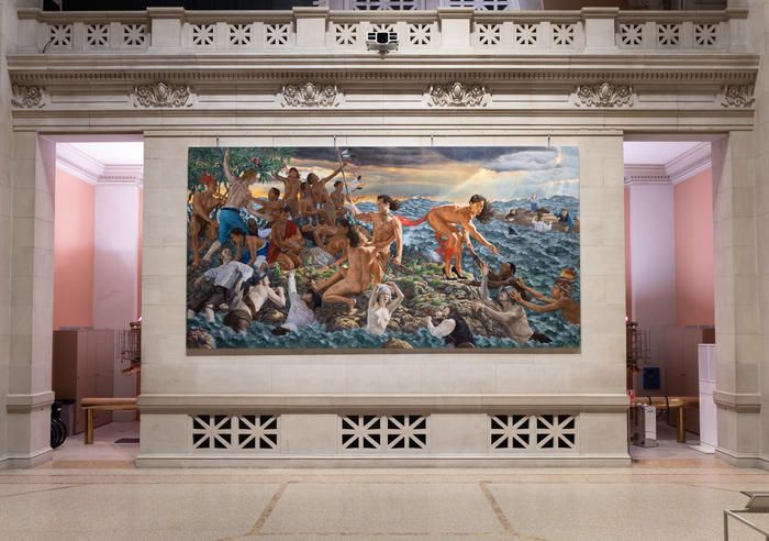 Kent Monkman commented, “In creating these paintings I was inspired, not only by the historic artworks in The Met collection but also by the history of Manhattan itself. For thousands of years, these lands have been a meeting center for trade and diplomacy for many Indigenous nations, including the Lenape, until they were displaced by European settlers. These paintings reference Manhattan’s important role as a portal for immigration into North America and also the impact our rising sea levels will have on the millions who could be displaced in the not-too-distant future.” Mistikôsiwak (Wooden Boat People) will be on view through April 9, 2020.