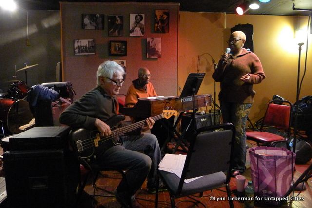 When we arrived, the Nina Weston Trio was rehearsing for a performance at The Shrine in February. Every few minutes the bright red door opened admitting both the audience and the musicians for the evening’s performance. The $5.00 admission includes live music, refreshments and the opportunity to perform or sit and enjoy the music. As we were leaving the woman sitting next to me whispered that the man who just sat down at the keyboard is the organist at the nearby Saint Philips Church. Local musicians abound in Harlem and NAMA welcomes them all.