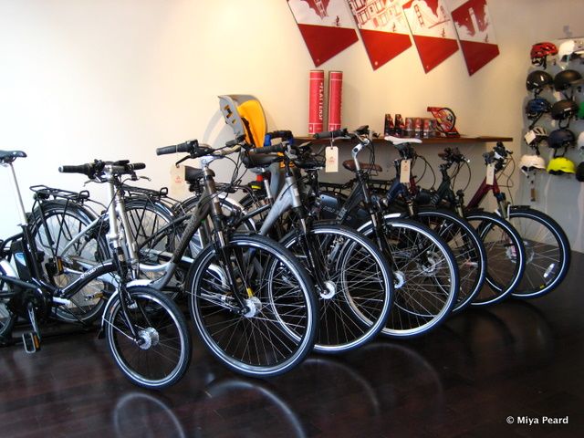 It being their first day open, my boyfriend and I became rental-process guinea pigs. It took a little while to find us bikes-I consider myself average height, but they needed to find a smaller bike for me to ride. Then they had to find the seat to go with it. Then they needed to figure out how to take the trailer hitch off the back so a day pack could be put on. Then, locks for the lights and front tires needed to be installed. And then we needed to be given instructions on how everything worked. And then”¦.we were off! Two blocks later my seat slipped and we had to return for some tightening. Through all of this, The New Wheel shopkeeps were nice, helpful, accommodating and generous.