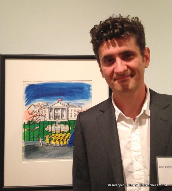 The exhibit’s many paintings and drawings of Madeline are guranteed to envoke nostalgia for patrons of all ages. Just walking towards the entrance and seeing the image of Miss Clavel and her twelve little girls, all wearing bright yellow hats is enough to implant a smile across your face. Those who have only seen Madeline in children’s books would be astonished to learn that the man responsible for her creation painted canvases, lamps and even plates. The standout during our visit was Madeline at the Paris Flower Market, one of the most iconic artistic portrayals of Bemelmans’ character ever painted. We also ran into Bemelmans’ grandson, John Bemelmans Marciano, at the exhibit. Marciano has continued his grandfather’s legacy by contributing his own Madeline stories, including Madeline at the White House, a story originally conceived by Ludwig and former first lady Jackie Kennedy.