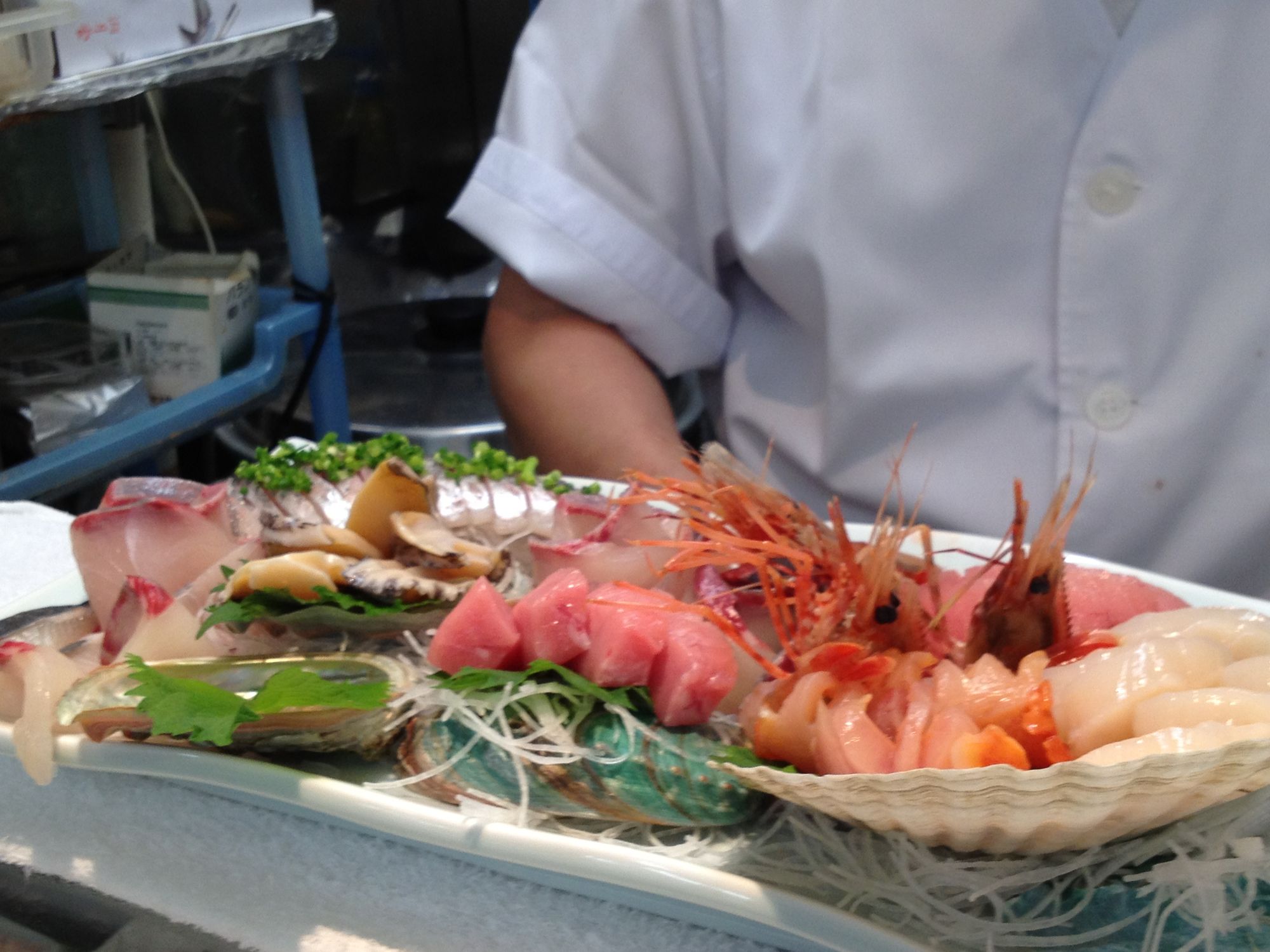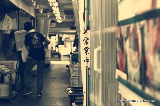 Nonetheless, there were always stories still to be uncovered. One of these little gems is in Tsukiji fish market, the central hub for the world’s sushi sources. It’s a small sushi shop tucked in a small alley that I always mentally jot down as opposite the pottery shop, with a fairly modest customer capacity of perhaps 10, as compared to its larger raw fish compatriots in the main market. We’ve eaten at this place so often that the old man behind the wooden counter has come to know our faces and always welcomes us back. (Or perhaps, to him we are just memorable as the family whose spoken Japanese is just simply atrocious and he is just too polite to tell us to stop trying.)