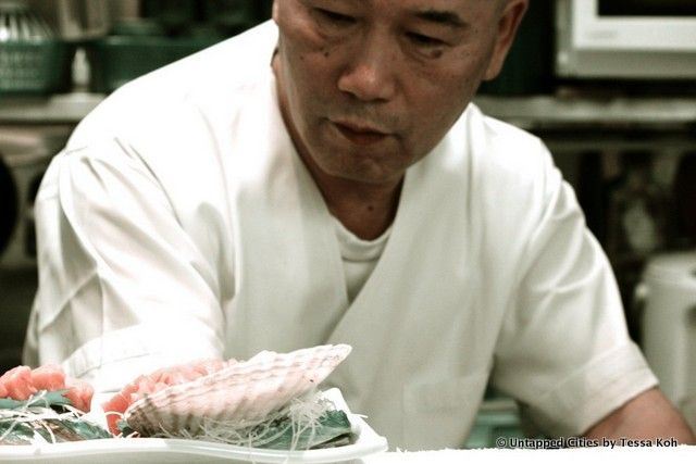 So this time around, I was determined to find out more about this old sushi master. With my barely-amateur Japanese and his surprisingly-reasonable English, together this interview was going to work! That, and the world’s universal language, hand gesturing. It turns out that he wakes up at 4 every morning, goes to the market to source out the freshest fish, and starts his business promptly at 7am. The customers he attends to are mostly regulars, locals around the vicinity who step in for their quick fix of sushi and exchange of updates in life. His ability to speak English comes from the 2 year period where he trained in Paris, after which he returned to Tokyo and set up this shop with his wife. I used to believe that the woman I always saw serving the tables was his wife, but it turns out that she was just a helper. His wife usually helps out on the weekends, and he takes Wednesdays off to spend time with his family.