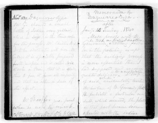 Notebook of Samuel Morse, on his daguerrotype experimentation. 1840. Located in the Library of Congress.
