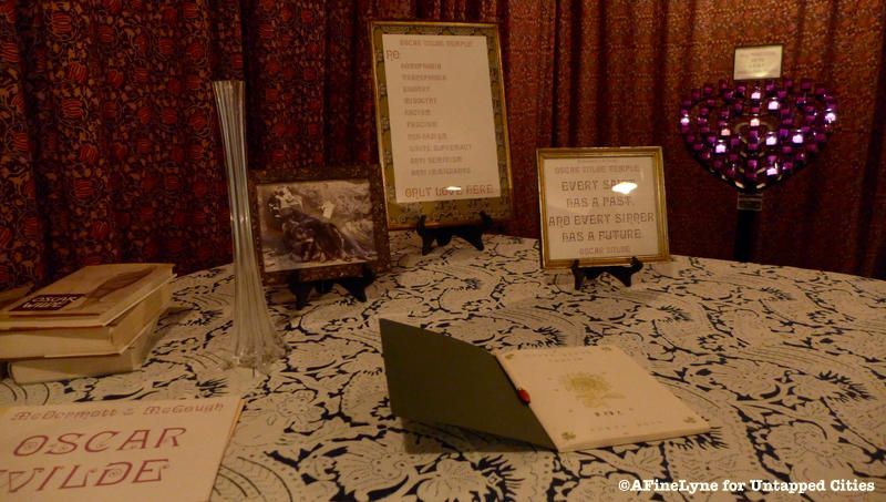 The Oscar Wilde Temple, a public art work, will be on view through December 2, 2017, in the Russell Chapel of The Church of the Village located at 201 West 13th Street, on the corner of Seventh Avenue South. It is free and open to the public from Tuesday through Saturday, from noon to 7 p.m. Check the schedule for related events.