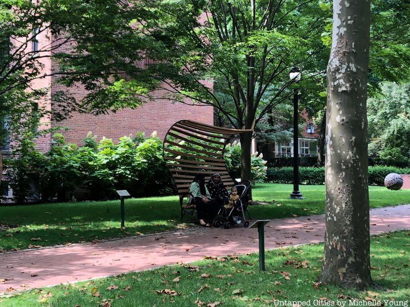 Access the Pratt Institute Sculpture Park from the corner of Dekalb and Hall Street (there’s a security guard, but don’t worry), or from Willoughby and Gerard avenues.