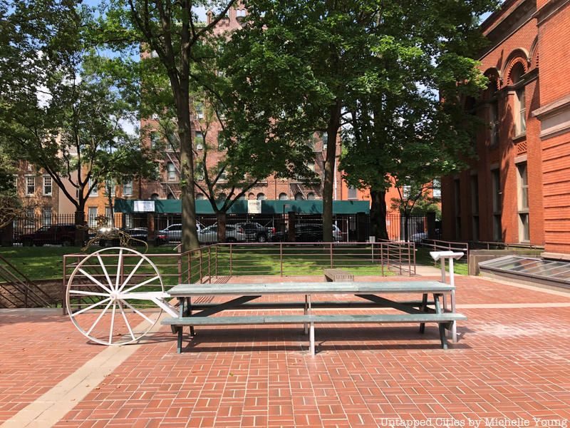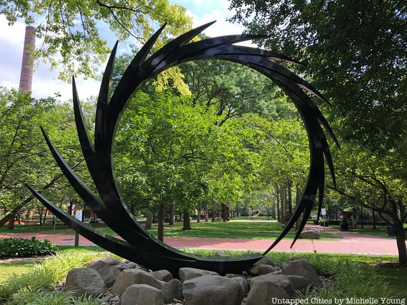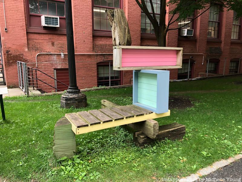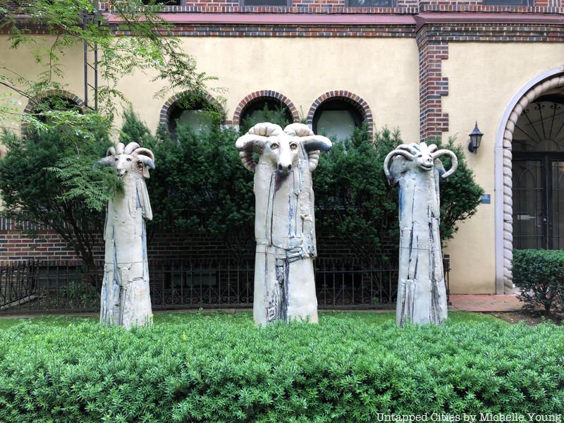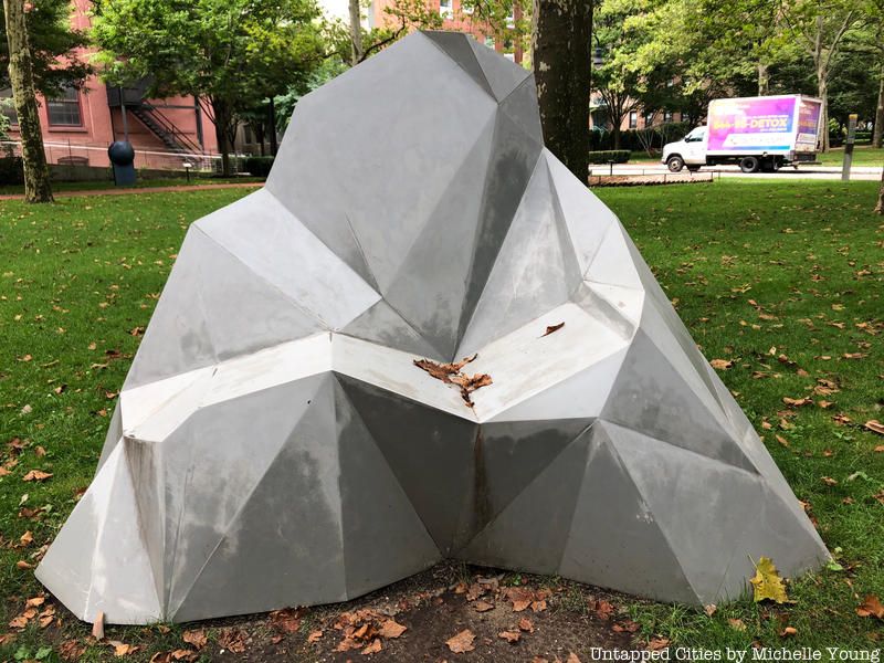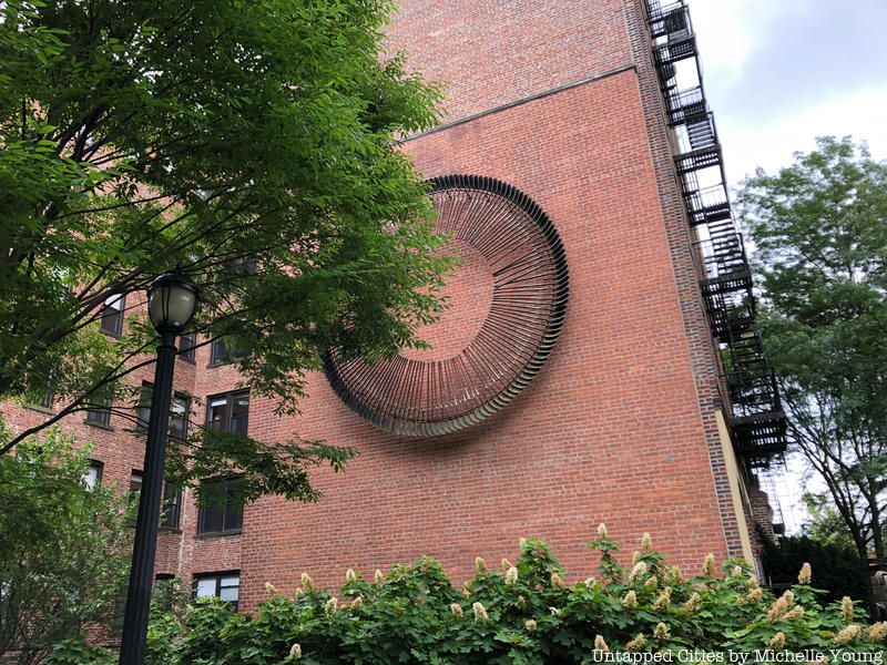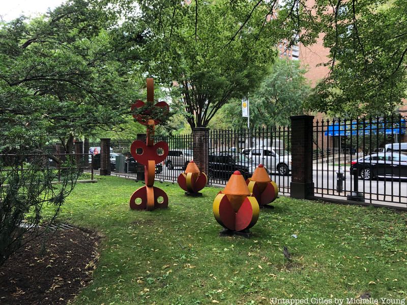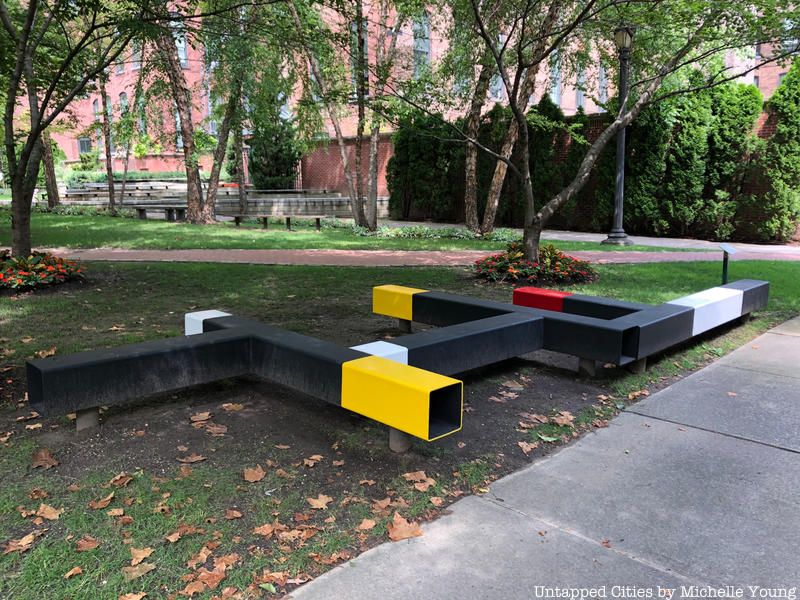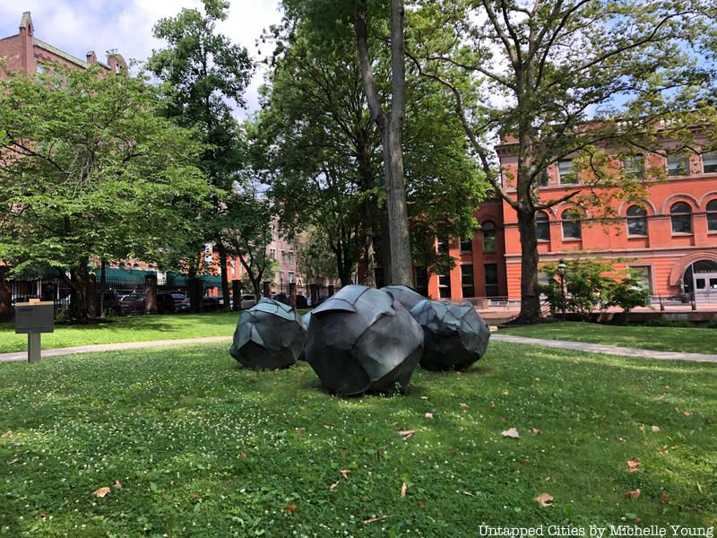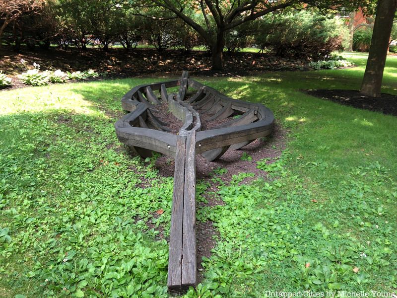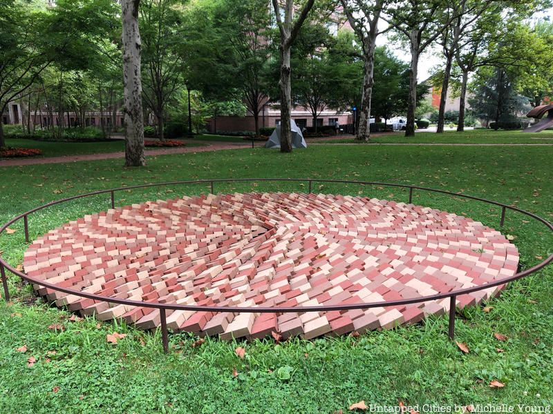 The fact that this sculpture park is free and open to the public falls in line with the original ethos of Pratt Institute, which was founded by industrialist Charles Pratt. His intent was to offer affordable education to everyone, and from the outset the school which opened in 1887 was open to students of any gender, class, or color. The curriculum focused on training for the industrial revolution, particularly in the fields of engineering and design.