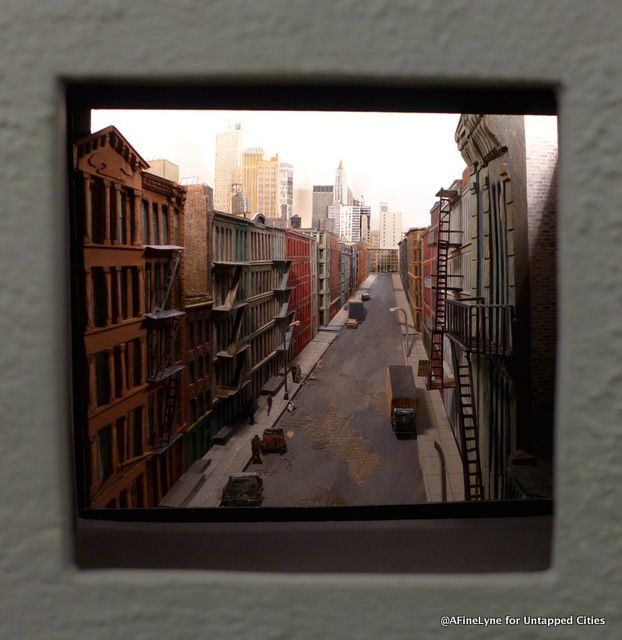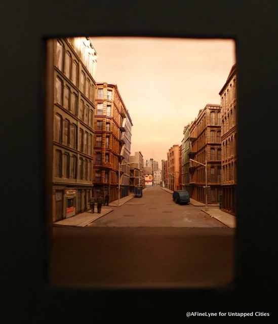 Included in this exhibit are two of Haas’ three dimensional dioramas. One of Broome Street and one of Green Street. Our photos were taken a foot away from the box, looking in.
