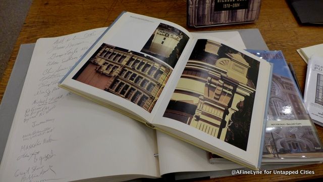 In addition, they have two gallery spaces–one on each floor–with regular exhibits by well-known artists. Currently, the Richard Haas exhibit is up. Best known for his mural work (including the exterior wall of The Fontainebleau on Miami Beach painted by Haas in 1985), Haas is a prolific painter. When the New York Historical Society reopened in 2011, the 77th Street Rotunda hung four panels depicting a 360-degree view of the New York City’s skyline, which had been on displayed in the employee dining room of the Philip Morris headquarters since 1982.