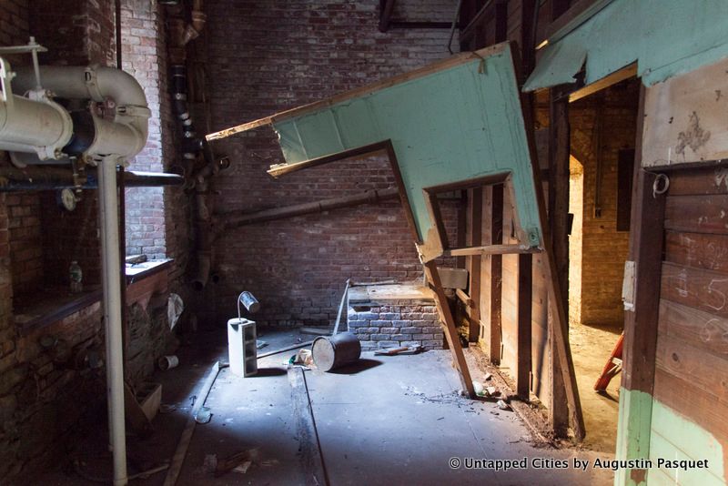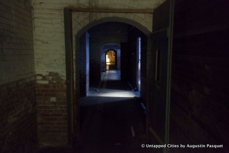 In this portion of the hallway, there’s a heavy, metal door that could have easily led to a sort of holding cell. Scenes from Goodfellas (where Paulie is in prison), were filmed down herein the abandoned shooting gallery area.