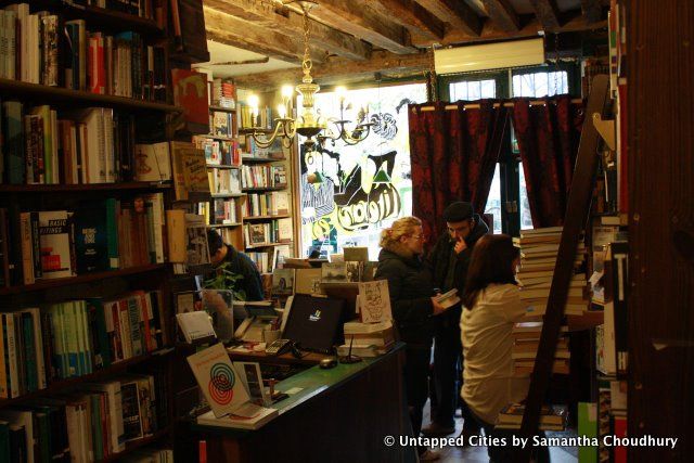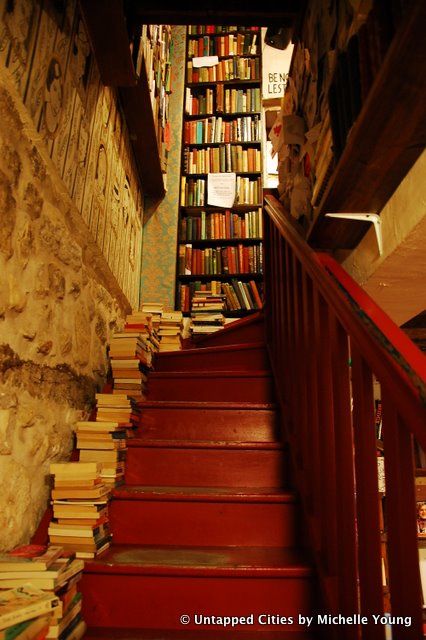 Walking into the store you can’t help but be drawn into this warm, intimate and  whimsical space, with stacks of books from every genre filling every nook and  cranny. This is truly a gem in Paris.