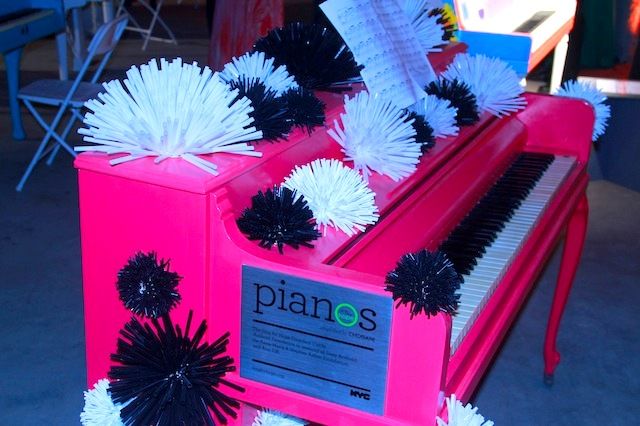 Though Allison Patrick and Elizabeth Van Buren of Zipper 8 Lighting have worked with Sing For Hope before (they made the centerpieces for a different Sing For Hope benefit last October), this was their first year designing a piano. But being new to the game didn’t stop them from making our list–their hot pink pom pom studded piano was one of the most memorable instruments on display. (And how could it not be? The pom poms themselves are made of drinking straws–in fact, the two artists used more than 7,000 drinking straws for the piano alone!)