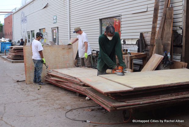Not only did the artists use the wood for their artwork, but according to photographer and Untapped Cities contributor Rachel Alban they also “cut, burnt, painted and polished” the wood before use. As she tells us, the artists are “pulling nails out of wood, sanding, and finishing each pane” before even raising that first bottle of spray paint. While continuing the traditions of making art on the streets of New York City, the graffiti veterans also became familiar with the traditions of wood cutting and carving. A blending of both worlds that perfectly encapsulates what the event was all about.