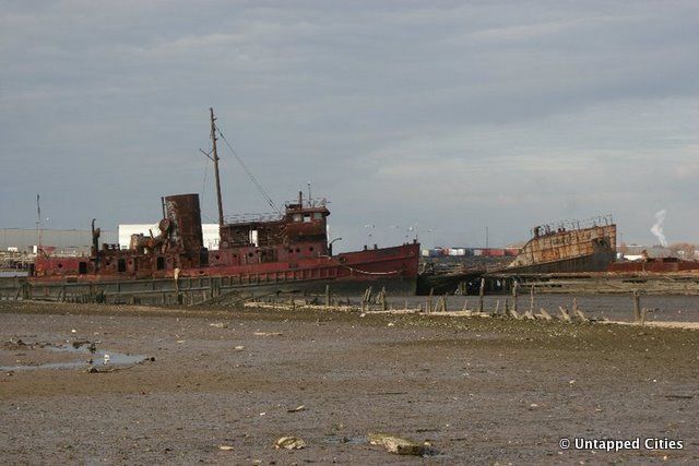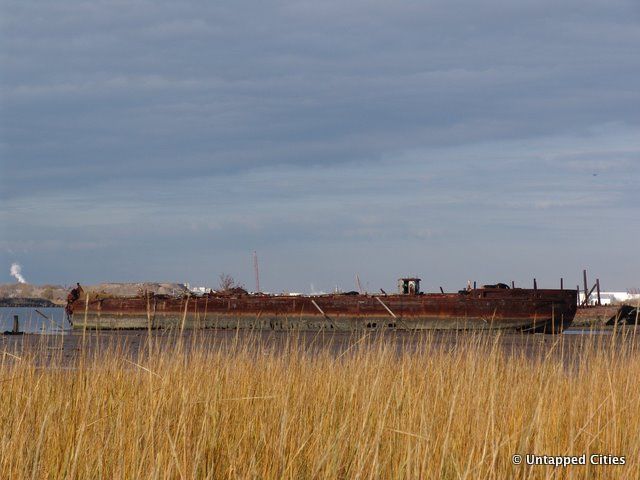 Perhaps you’ve heard of an elephant graveyard, but what about a boat graveyard? Does such a thing exist? Turns out it does, and New York City has one. Known as the Witte Marine Scrap Yard, the Arthur Kill Boat Yard, or simply the “Staten Island Boat Graveyard,” the city’s only remaining commercial marine salvage yard is located in Rossville, Staten Island, near the Fresh Kills Landfill which Untapped took a tour of in the midst of its conversion into a park. As any New Yorker who likes to explore the city, we were anxious to see this “boat graveyard”–even if it meant we would have to trek to Staten Island to do so. So early one Sunday morning, we boarded the Staten Island Ferry, hopped on local bus S74 to reach Rossville, Staten Island. During the hour bus ride, we passed what seemed like countless graveyards, and we watched as the landscape became increasingly more suburban and forested.
