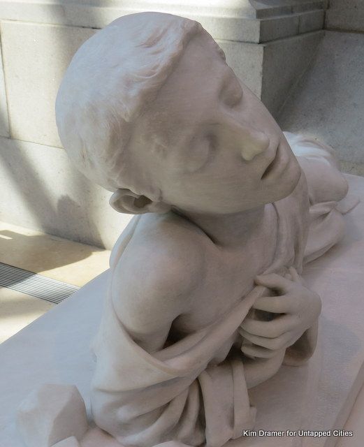 In Falguière’s marble statue, the fatal paving stones lie at the elbow of the fallen martyr. The Host is clutched in his arms, while his face exhibits an expression of beatific rapture. Tarcisius is the patron saint of First Communicants, but makes a strange companions for diners at the Met’s Petrie Court Café .