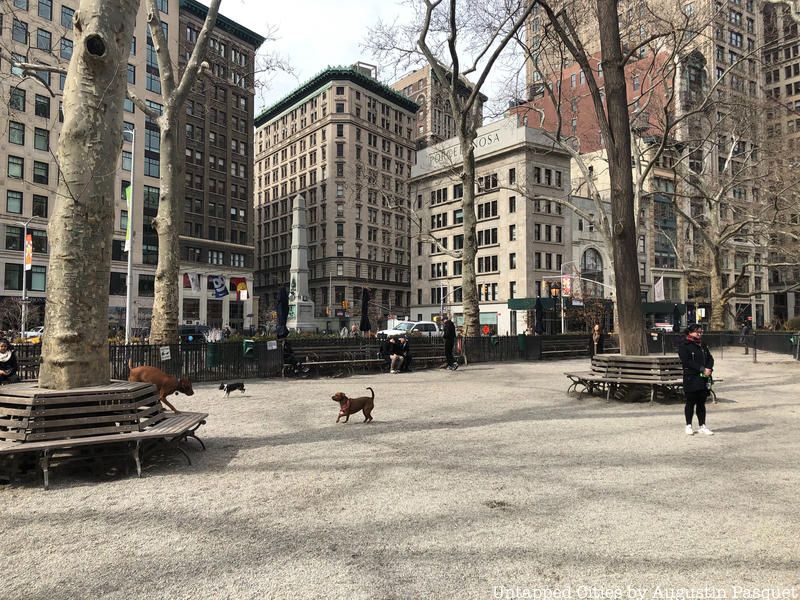 The dog run at Madison Square Park is always lively with the friendly tussles of neighborhood pets. And despite its rowdy personnel, it is well-maintained, spacious, and accommodating. At both ends of the park are water pumps and bag dispensers. The seating area is also conveniently in the shade of trees separating the park from the street.