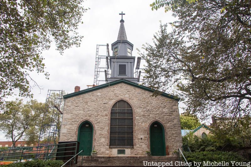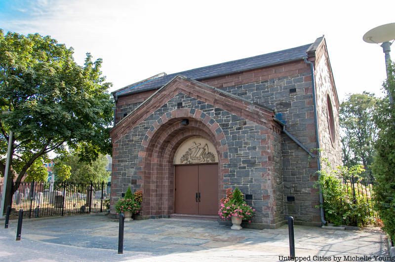 Located in the Port Morris neighborhood of the Bronx, the church of St. Ann in the Fields is connected to the Morris family that settled the area. The church was built in 1840 on a field within the estate of Gouverneur Morris II, in honor of his mother Anne Carey Randolph Morris who was said to be a descendent of Pocahontas. Among the dozen or so Morris family members buried in the vault at St. Ann in the Fields include the first Gouverneur Morris, who drafted the United States Constitution, Judge Lewis Morris, the first governor of New Jersey, Major General Lewis Morris, who signed the Declaration of Independence, and Judge Robert Hunter Morris, a mayor of New York City.