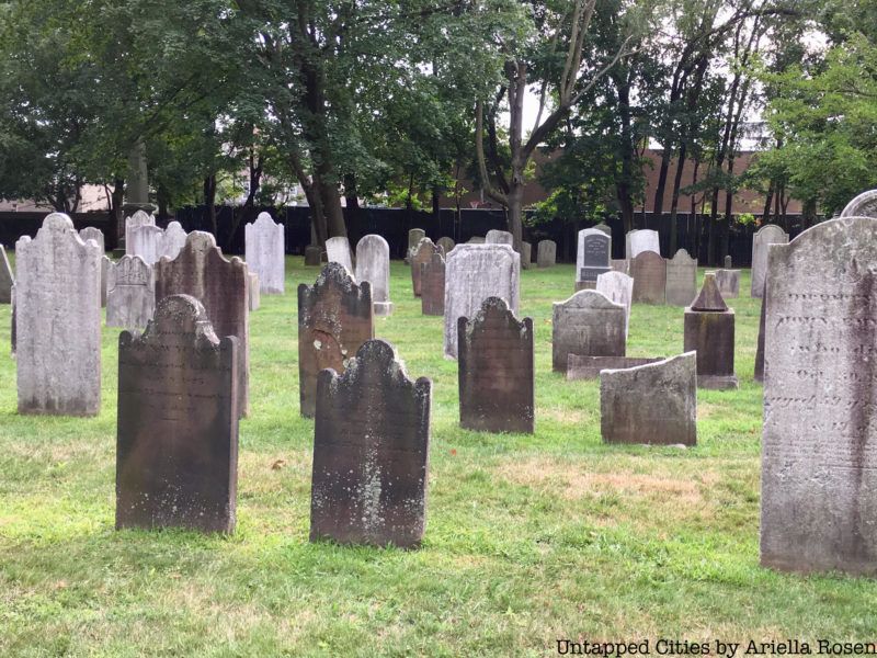 The cobblestones in the burial ground were added with assistance from a few dozen teenagers in 1969, at a time when the graveyard was a hangout for drug users and subject to random dumping. The Reverend J.C. Michael Allen who led the redesign project told The New York Times, “A few people have complained to me about the cemetery project, but I don’t think they understand. There are many ways to honor the dead, but for me and the anguished people who are my parishioners, I think the best way to honor them is not to die with them, but to live with them.”