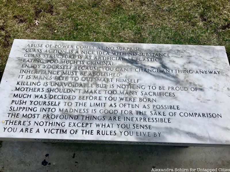 This bench is part of Holzer’s “Truisms…” series which consists of statements and aphorisms (“truisms”) in various materials, such as silk-screened paintings of declassified government memoranda detailing prisoner abuse. Thus, the bench serves as Barnard’s first major piece of artwork and is a world-class, provocative sculpture that is aligned with Barnard’s mission to educate women to think and speak out.