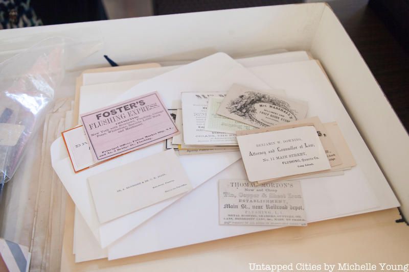 The cornerstone of Flushing Town Hall was laid on June 7th, 1862. Inside this cornerstone was placed various documents and objects relevant to the time period and the town. The items include buttons, coins, a pen, a Bible, newspaper clippings, business cards, a history of Flushing, the original document that organized the Flushing Fire Department, and more.