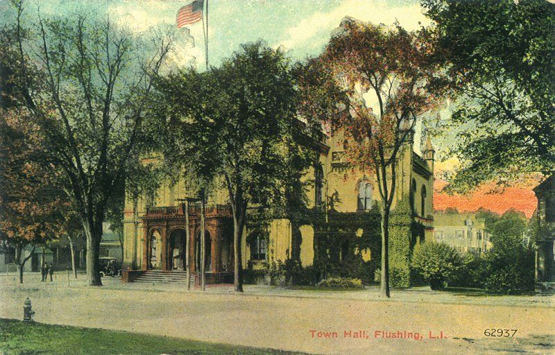 When a New Yorker thinks of Flushing, images of the city’s secondary Chinatown and Koreatown will likely emerge. But Flushing’s rich history is apparent in the pockets of historic, landmarked buildings situated along Northern Boulevard, as well as sprinkled throughout the neighborhood. One of these is Flushing Town Hall, built during the Civil War. It is located between Linden Place and Leavitt Street across the street from Flushing Quaker Meeting House, which dates to 1619. Though the area around it has changed dramatically in the century and a half since the first cornerstone was laid, the Romanesque Revival-style building retains both its stateliness and its “striking picturesqueness,” as the Landmarks Preservation Commission described it in its designation report in 1968.