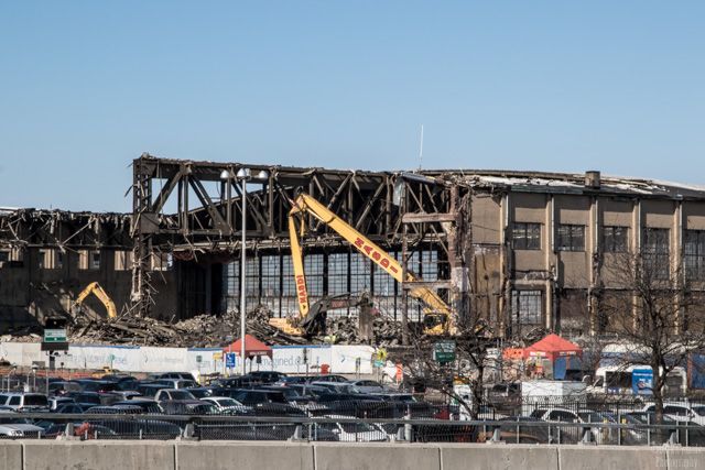 In 2015, we reported on the demolition of jet age hangars 2 and 4 at LaGuardia Airport. The Port Authority had already spent three years on a plan to update LaGuardia Airport when Governor Cuomo announced a design competition for the airport. According to our source who worked on the redevelopment team at the time, this derailed the multi-year effort which is why to this day, most of the newness has been the large parking garages lining Grand Central Parkway.