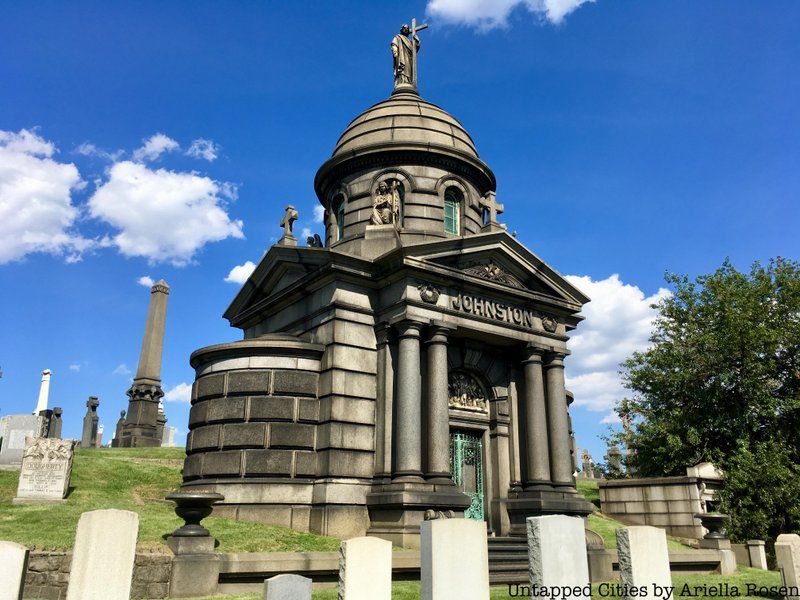 Built and occupied by the Johnston brothers in the 19th century, The Johnston Mausoleum is the largest personal mausoleum (and the third-tallest building) in the cemetery, costing over $100,000 to construct at the time (or roughly $2.5 million when adjusted for inflation). Thirty vaults are built into the marble, although only six interments took place.