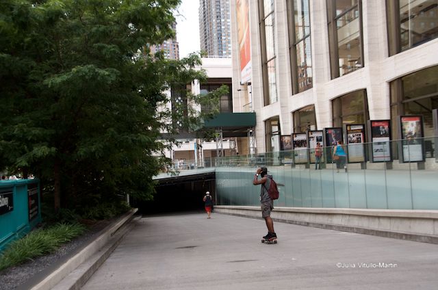 Now the access drive, renamed the Roslyn and Elliot Jaffe Family Drive, is buried. No more cars on the plaza, marring the view or mowing down patrons. Even those arriving by car are happy, as they alight into a protected, concourse-level porte corchère yielding direct (and ADA compliant) access to the theatre. There have even been art exhibits, dance parties and film sets in the drive–a true multi-purpose piece of infrastructure.